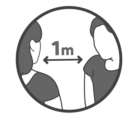 Distance de sécurité de 1 m minimum respectée.