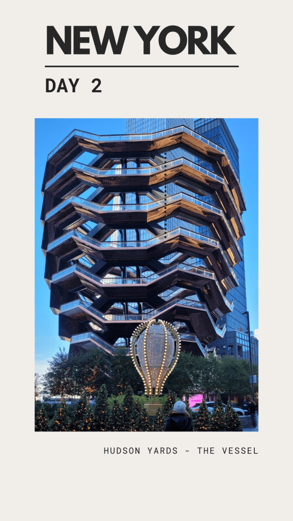 Et si nous faisions un brin de shopping ce matin ? Allons au Hudson Yards mall ! Une photo devant l’impressionnant « The Vessel » et on emprunte la « High Line » qui est une ancienne voie ferrée devenue piétonne et arborée pour se promener entre les gratte-ciels. Elle nous emmène jusqu’à la « City Winery » où vous pourrez déguster du vin élaboré en plein coeur de New York ! Pour luncher, on va de stand en stand au Chelsea Market pour voyager au gré des cuisines du monde.