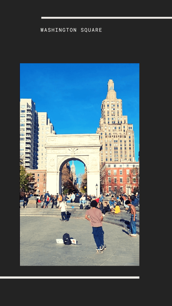 Direction désormais le Washington Square et son « arc de triomphe » pour déambuler entre skatteurs et hippies. Sur le chemin, achetez une part de margherita chez Joe’s pizza.