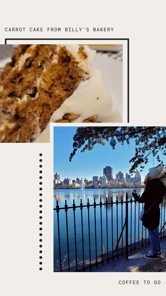 Faites-vous beaux et rendez-vous chez Billy’s bakery pour choisir un cupcake ou carrot cake, ensuite attrapez un café à emporter et direction Central Park pour marcher au milieu des joggeurs.