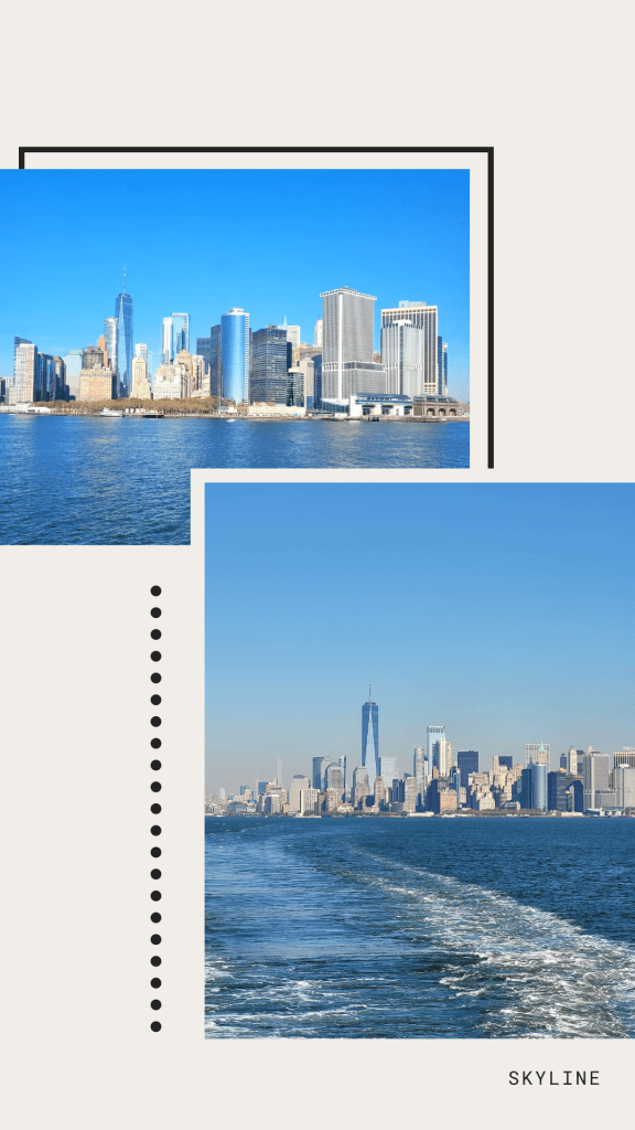 Ce matin, direction la pointe sud de New York au point de vue de la Statue de la Liberté. Deux options alors s’offrent à vous : soit vous prenez le ferry qui vous emmène sur Ellis island, puis sur l’île de la statue de la liberté (payant), soit vous prenez le ferry (gratuit) qui vous emmène sur la Staten Island et vous verrez la statue de plus loin. Dans les deux cas, depuis le ferry, admirez les couleurs pastels du matin sur la skyline.