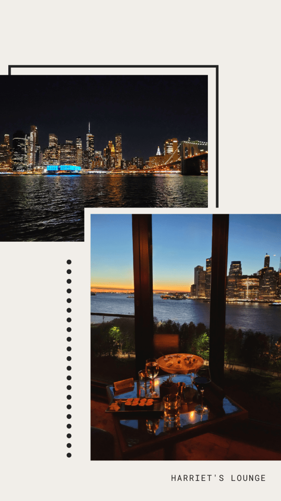Concluez votre journée en traversant le Brooklyn Bridge au coucher du soleil. Vous pourrez admirer tous les changements de couleur dans le ciel et les reflets sur les vitrines des buildings, un merveilleux spectacle (que vous partagerez avec des centaines de personnes…). Après une traversée mouvementée, rendez-vous au Harriet’s Lounge pour un diner très romantique.